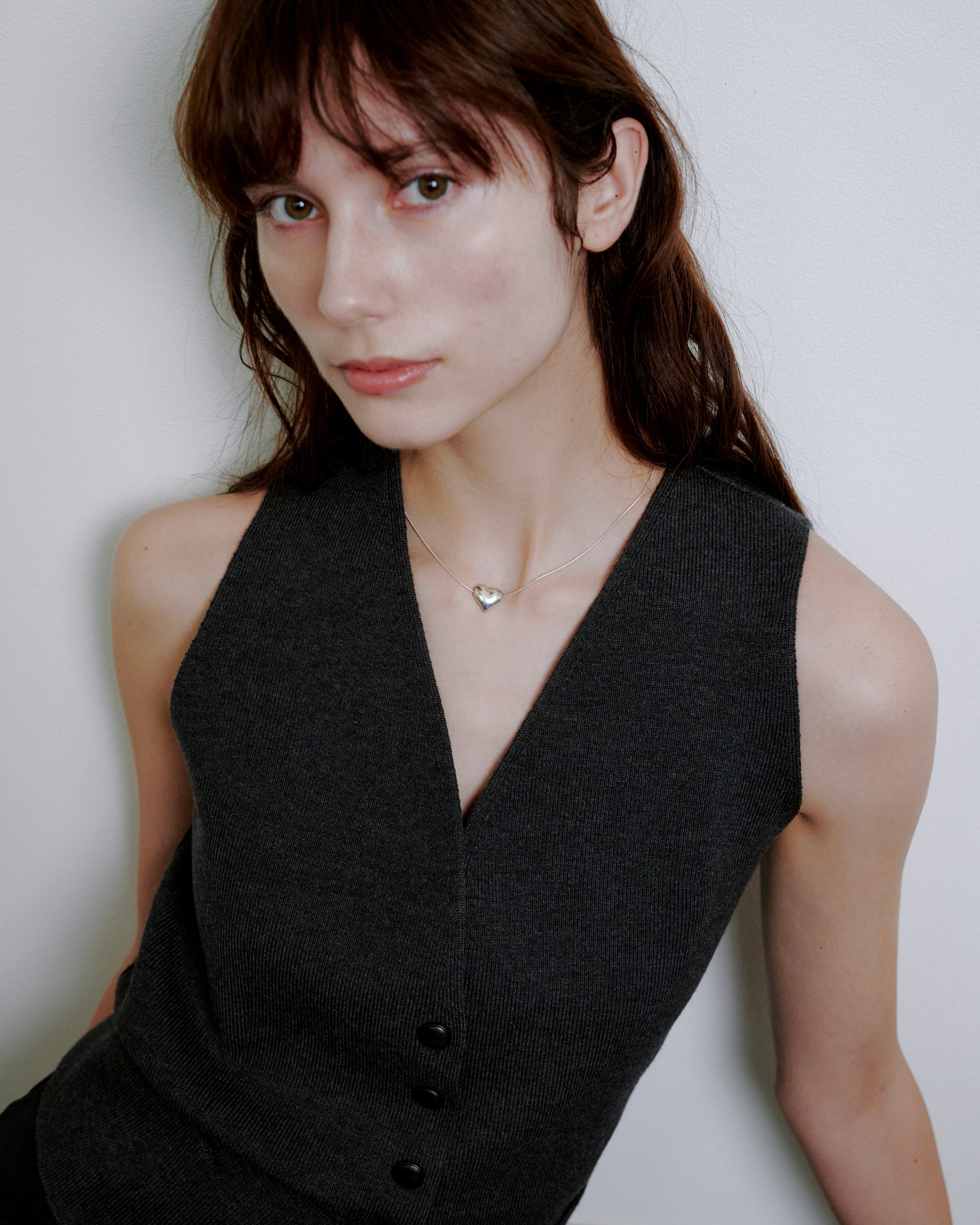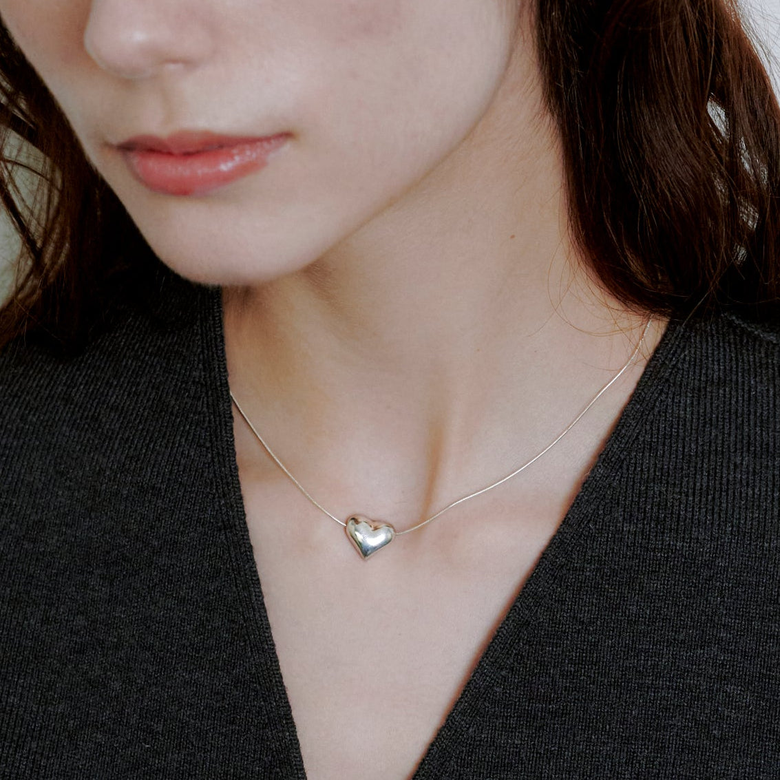 素肌に溶け込む繊細なチェーンに柔らかな丸みを帯びたハートモチーフを添えたネックレス。
