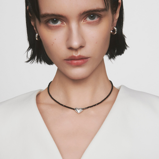 控えめなハートは静謐なアクセントとして佇み、スタイルを知的で洗練された印象に。