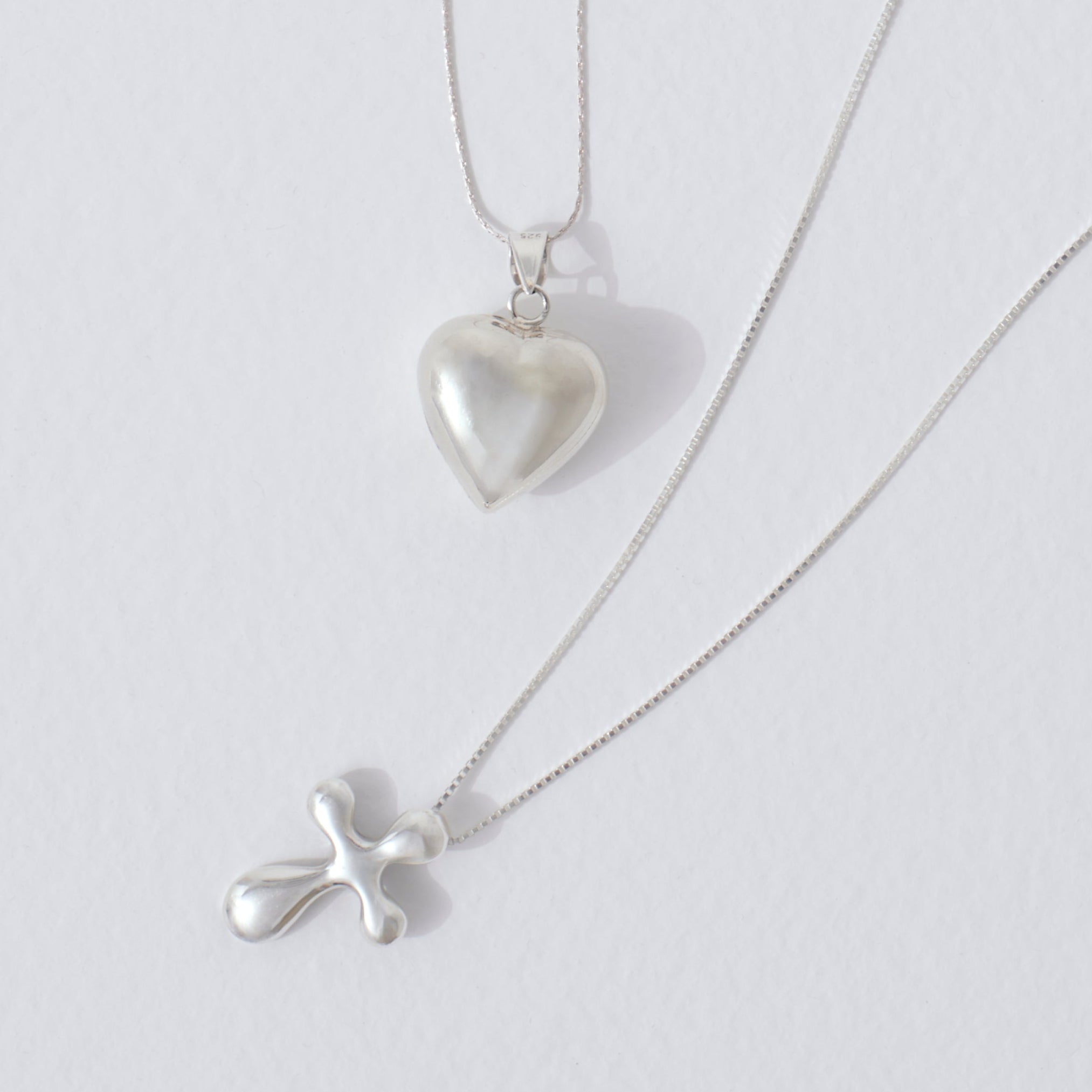 シルバーのシャープさが、ハートの甘さを抑えモダンでクールな印象。