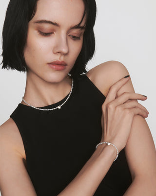 甘すぎない空気感と、シルバーの洗練が交わり、クリーンな印象に仕上がる一本。ぜひbraceletと合わせて着用してみて。