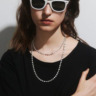 オールブラックやシャツと合わせて、都会的でモダンな雰囲気に。エッジィなアクセントとして、スタイル全体を引き締めてくれます。