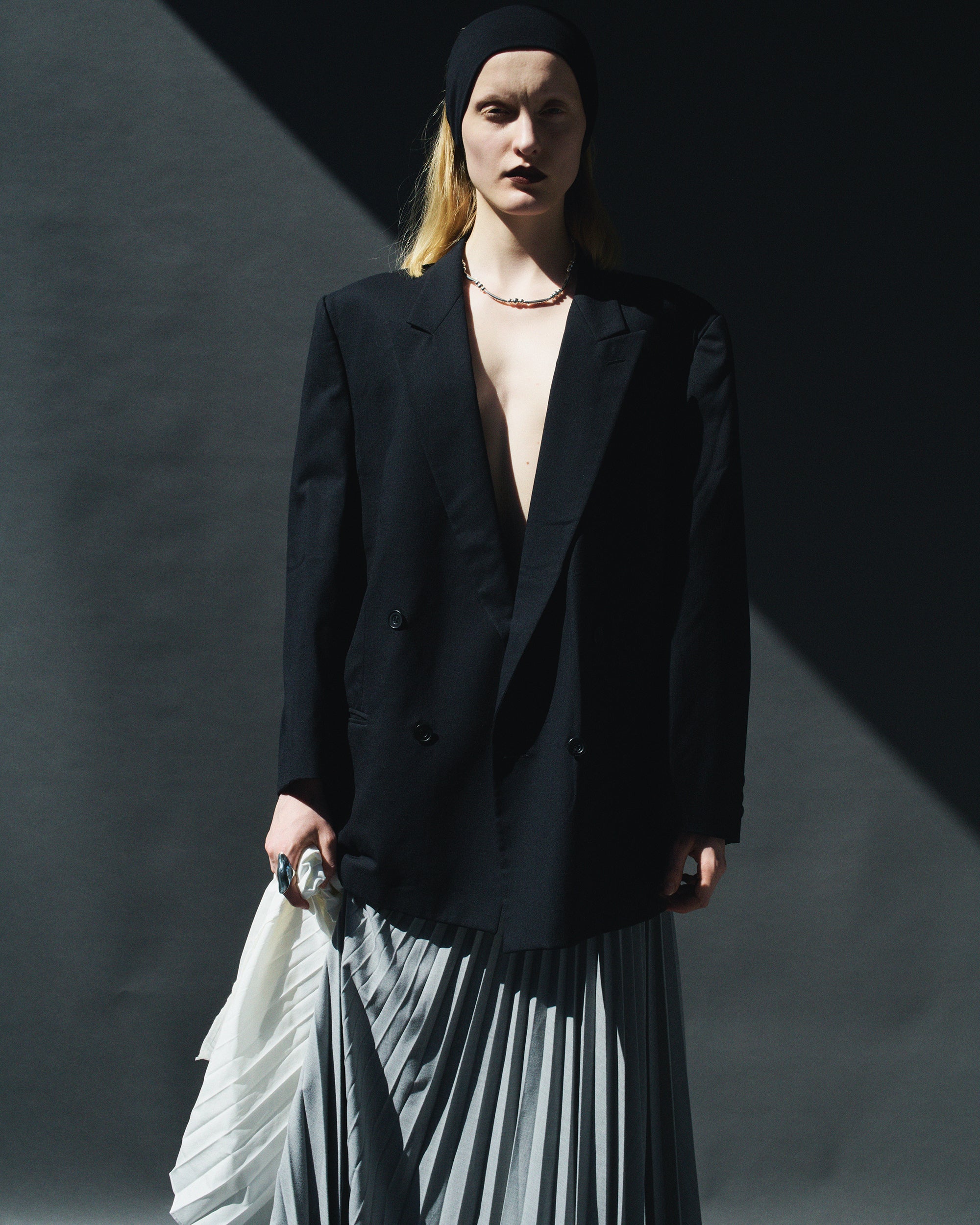光を受けて生まれる鋭さと陰影が指先の動きに呼応し、静かな緊張感と洗練されたムードを添える仕上がりに。