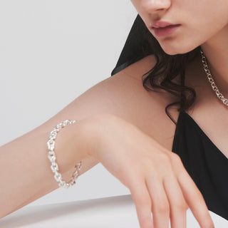 シルバーの艶が映え、知的な顏周りを作ります。