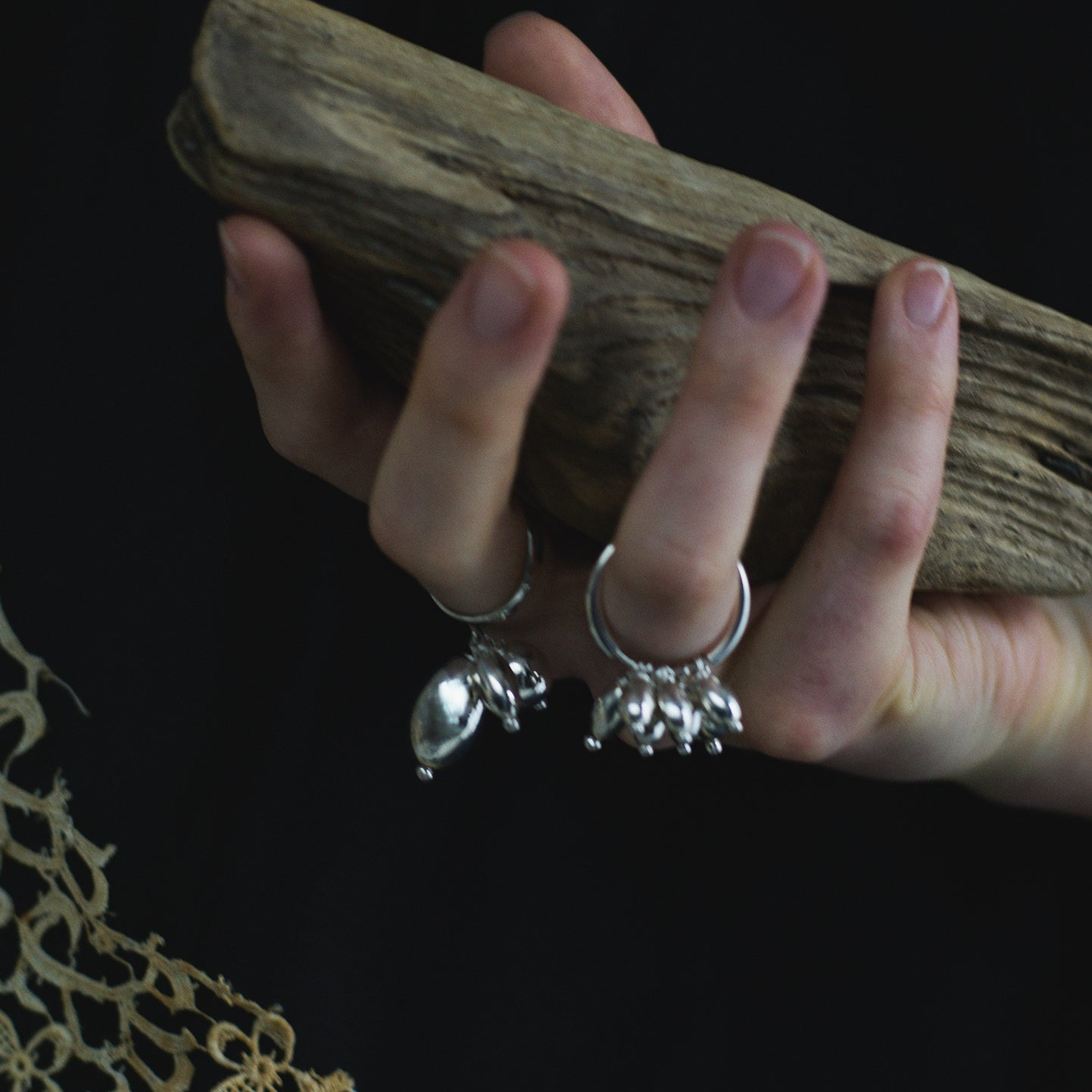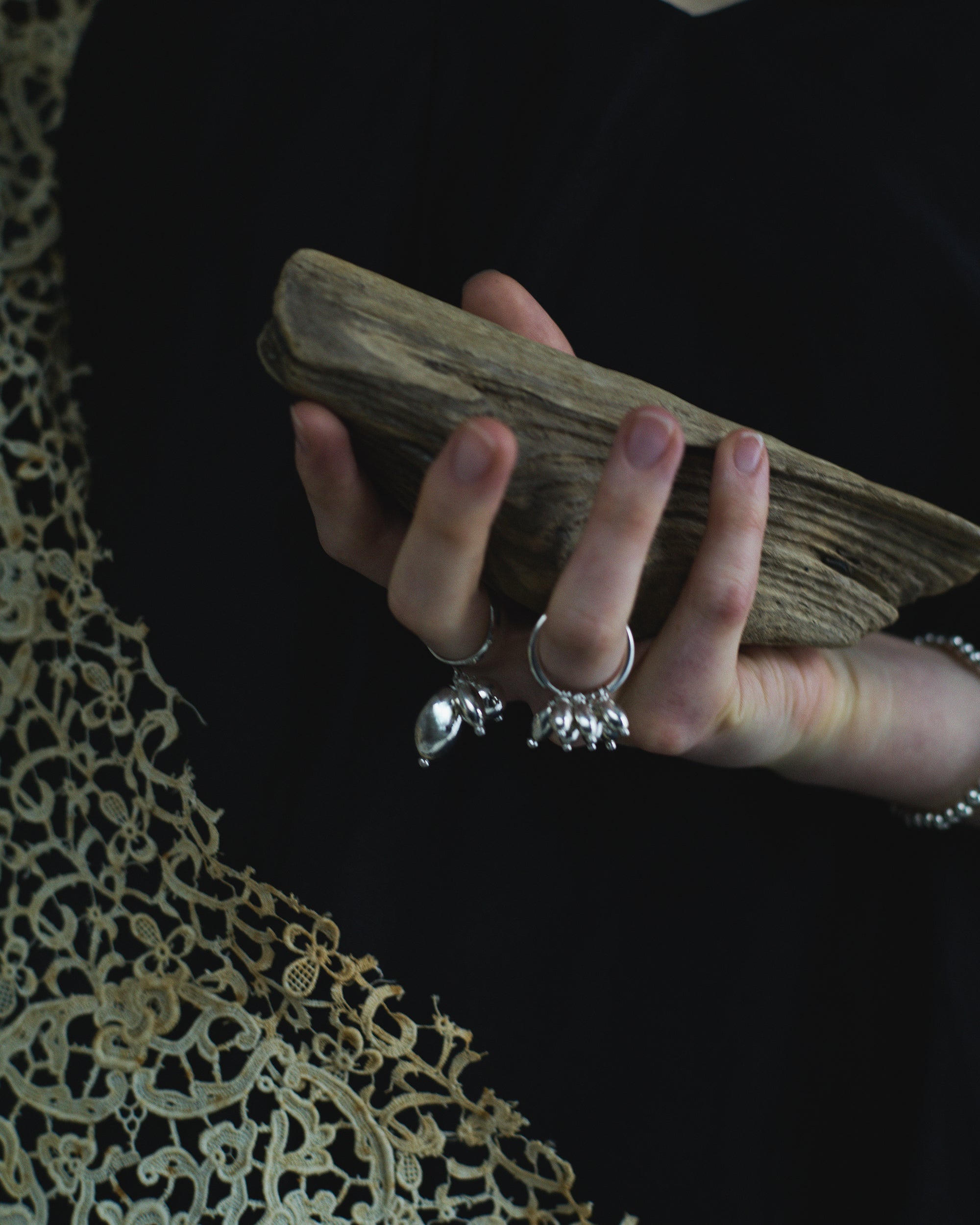 連なる有機的なフォルムが、芽吹きの瞬間に広がる生命の気配を映し出し、指先に静かなリズムと表情をもたらします。