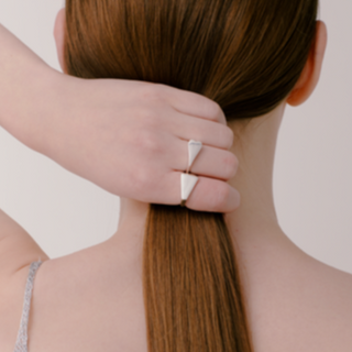 ニットやシャツなどマニッシュな装いにモードなオーラを纏って。