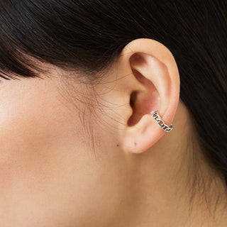 ゴールド×シルバーの艶やかな光沢が顔周りにクールな輝きを添えてくれます。