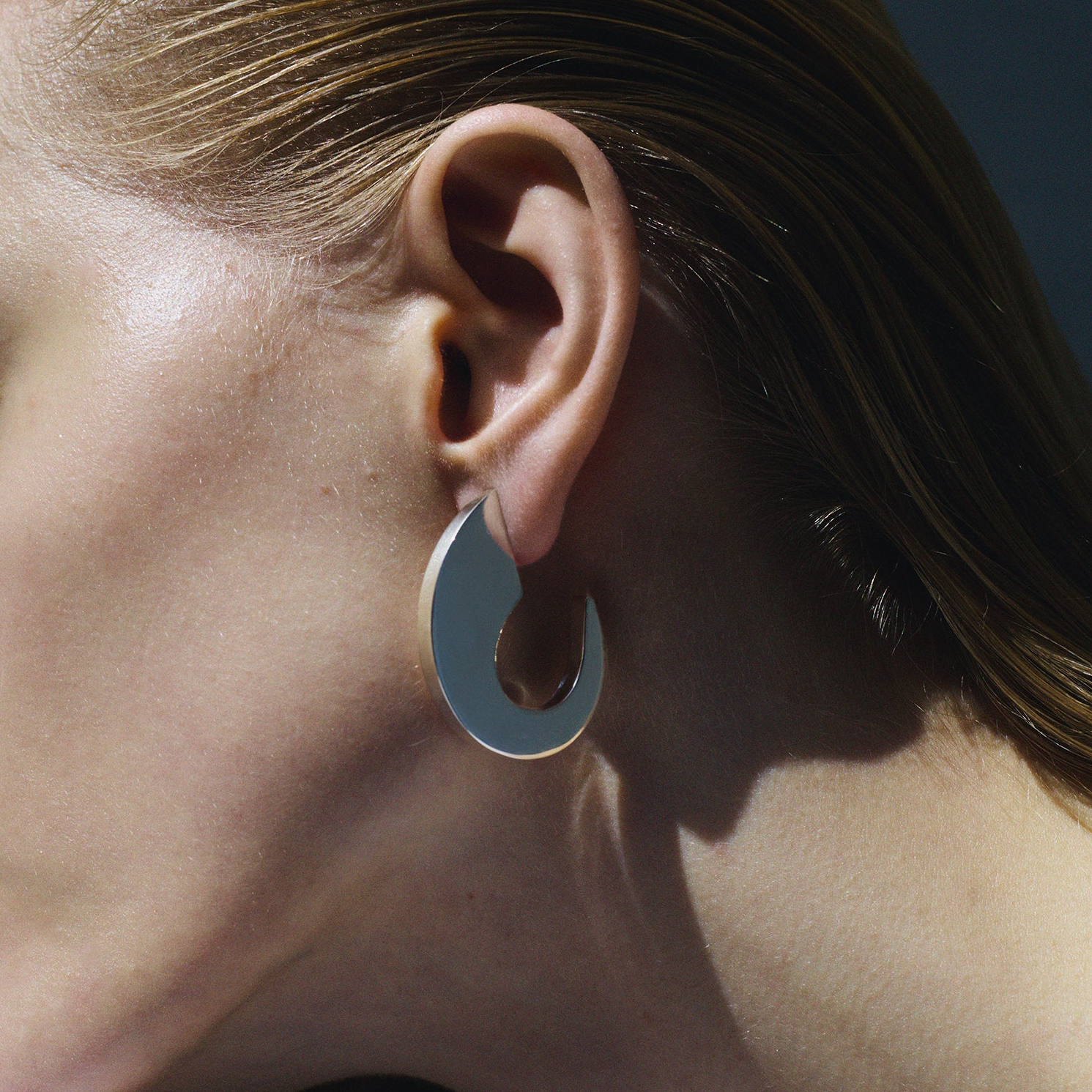 シルバー925の艶が肌とのコントラストを際立たせ、ミニマルなスタイルの中で構築的なアクセントとして映える一点です。