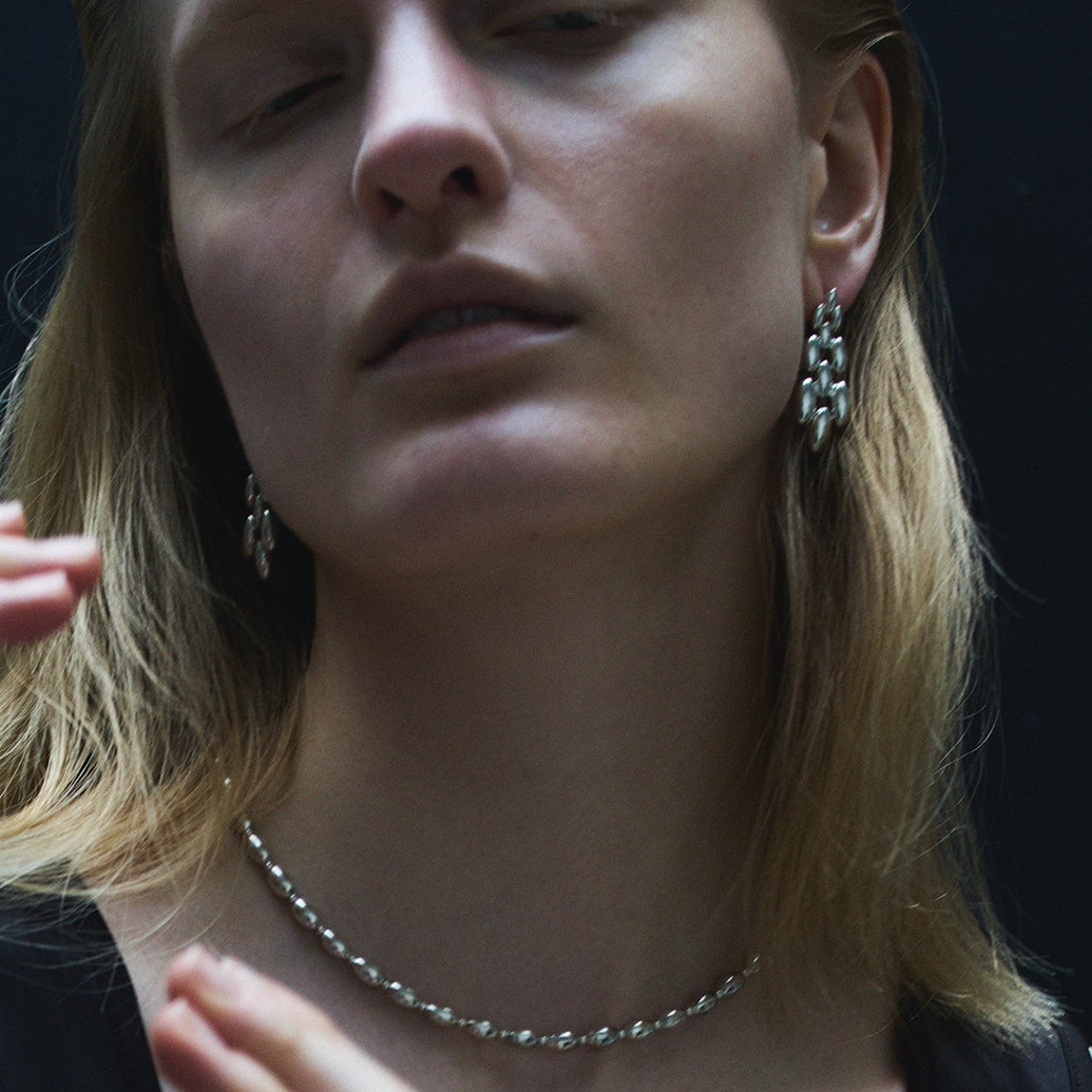 シルバー925の艶が光を受けて立体的に際立ち、横顔に奥行きとクリーンな印象を添えます。