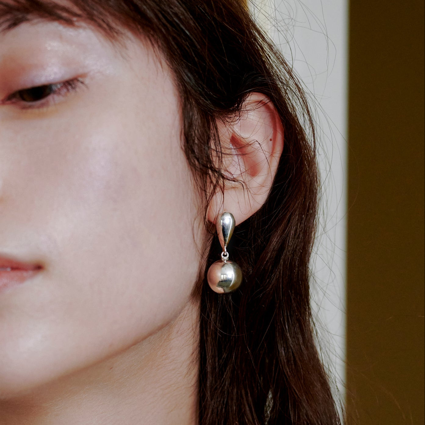 ボールが揺れるたびシルバーの光沢が艶めき、顔周りを華やかに。