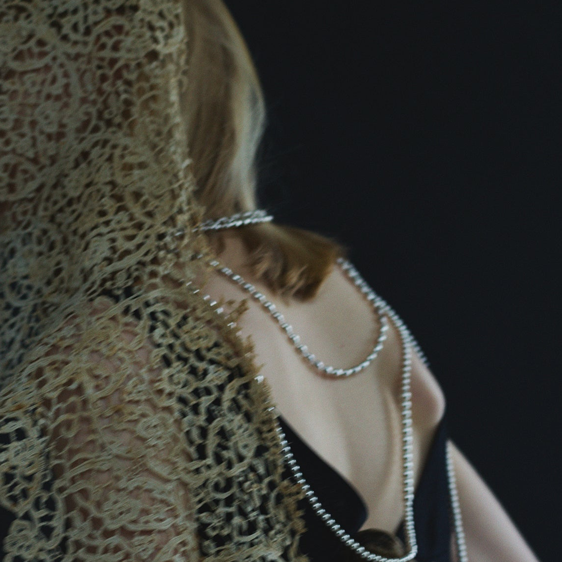 しなやかに続くカーヴィーなシルエットが素肌に沿い、首元にやわらかな陰影を生み出します。