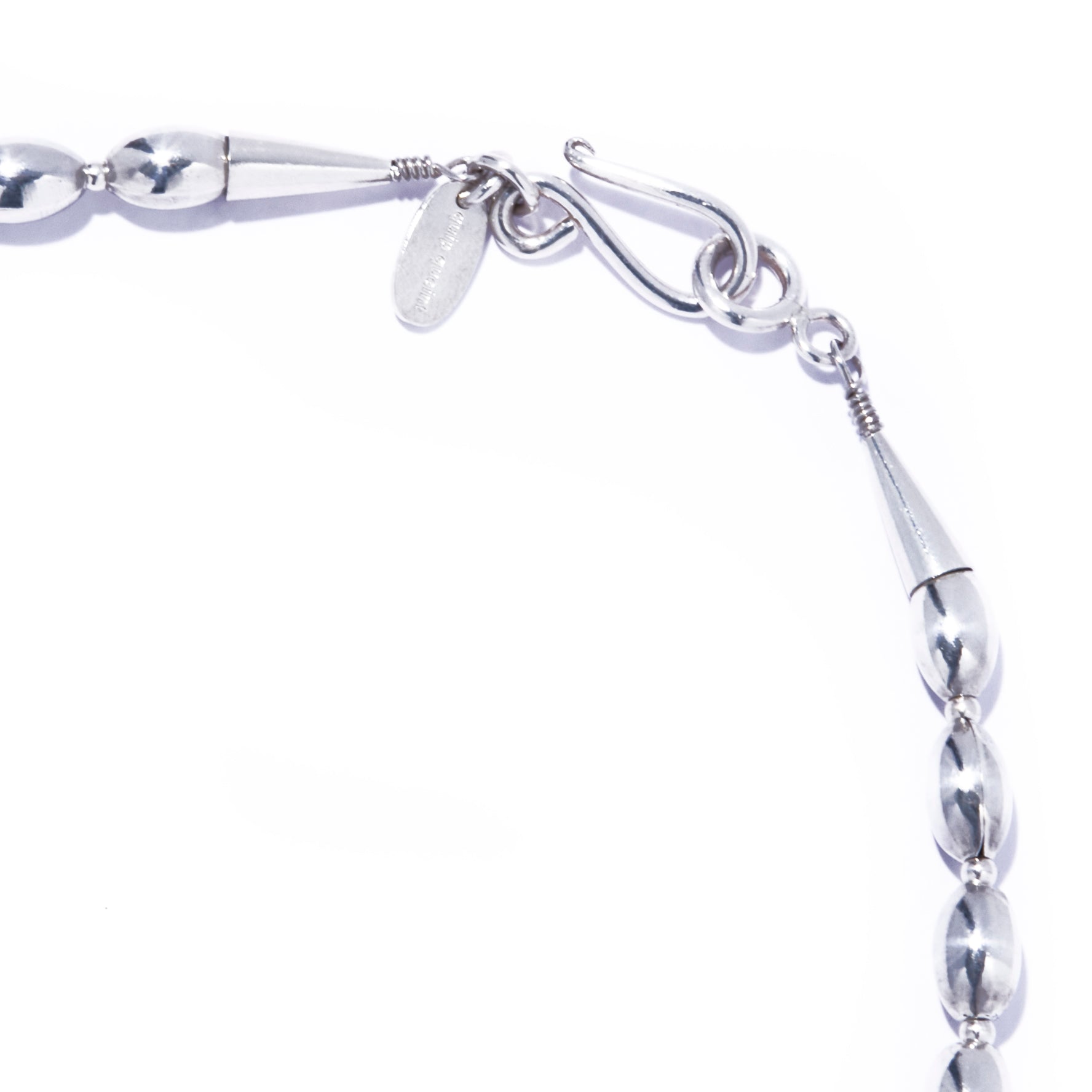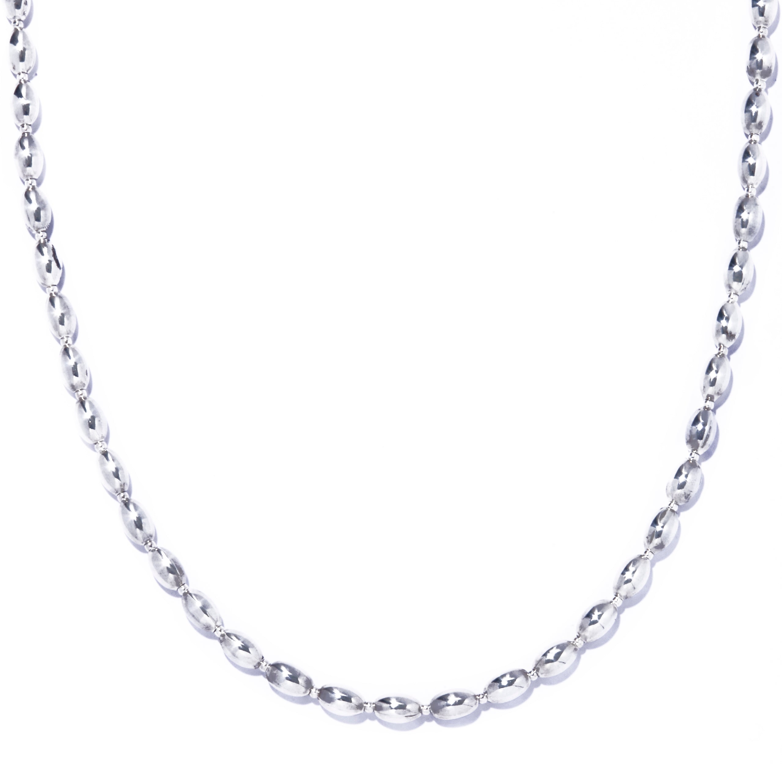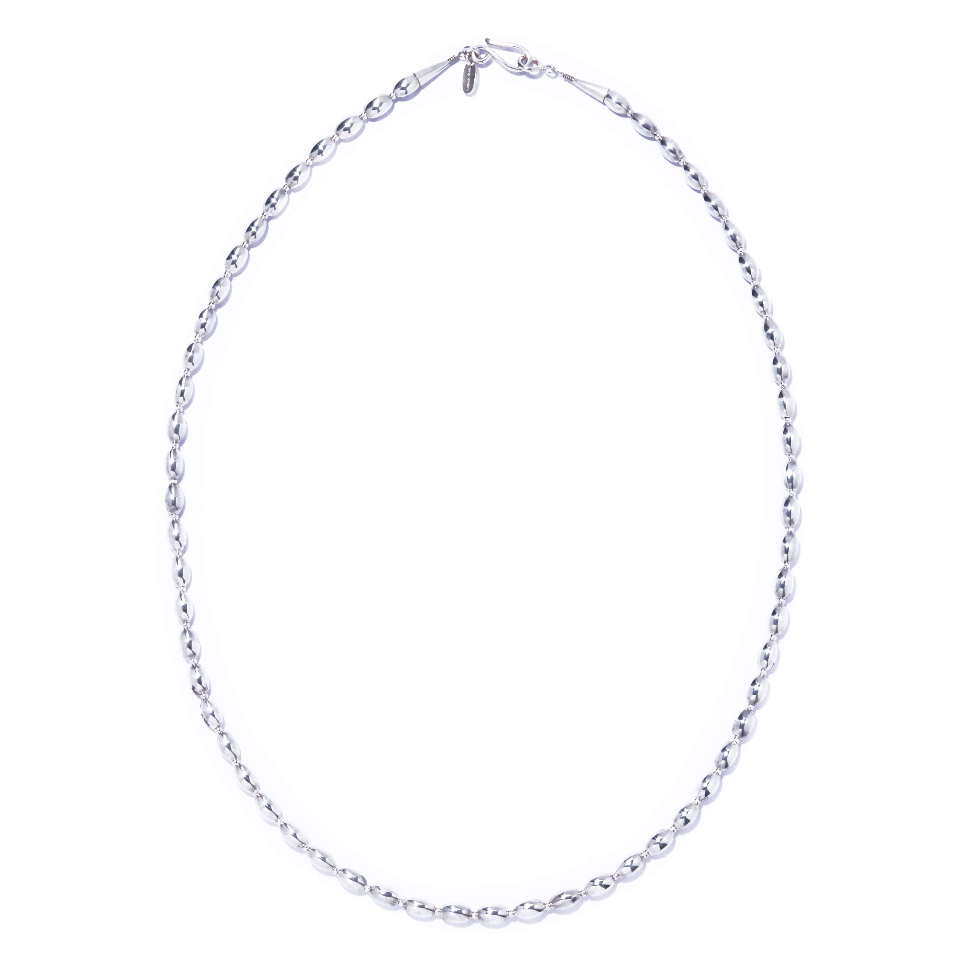 シルバー925の艶が光をやわらかく受け止め、首元にクリーンで洗練された表情をプラス。